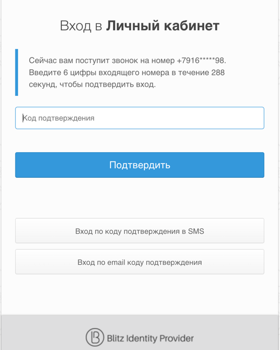 При включенной двухфакторной аутентификации пользователю после выполнения входа по логину и паролю или любым другим доступным способом потребуется дополнительное подтверждение, например, с помощью кода подтверждения, полученного в SMS-сообщении, push-уведомлении, по электронной почте, сгенерированного в специальном мобильном приложении или доставленного в виде последних цифр входящего звонка.