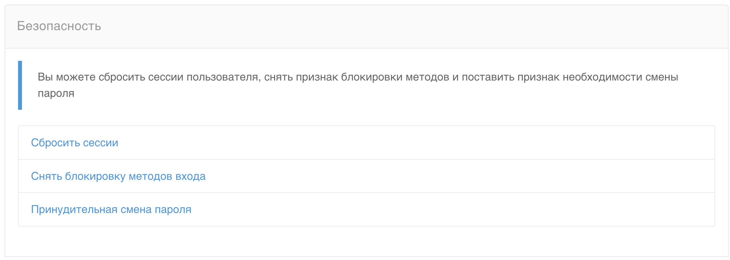 В блоке Безопасность доступны три кнопки: