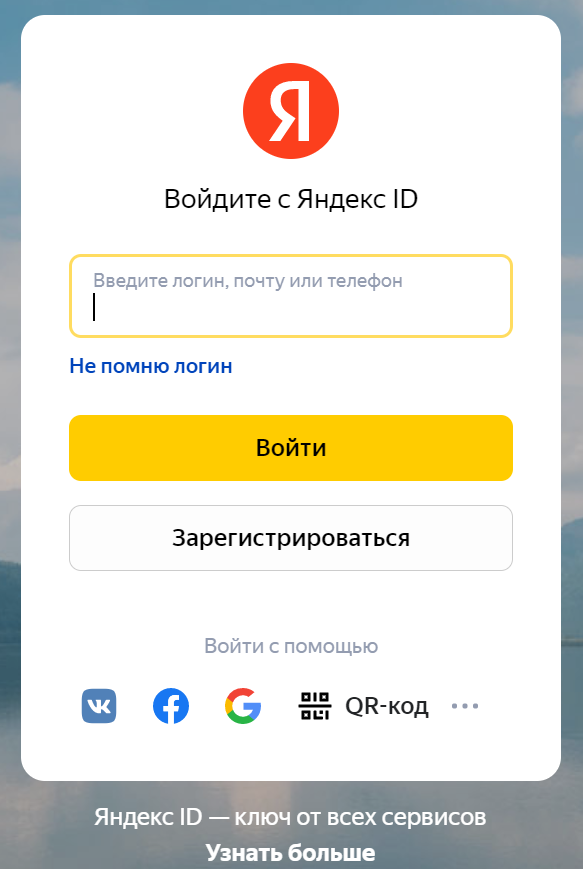 поставщика идентификации Яндекс;