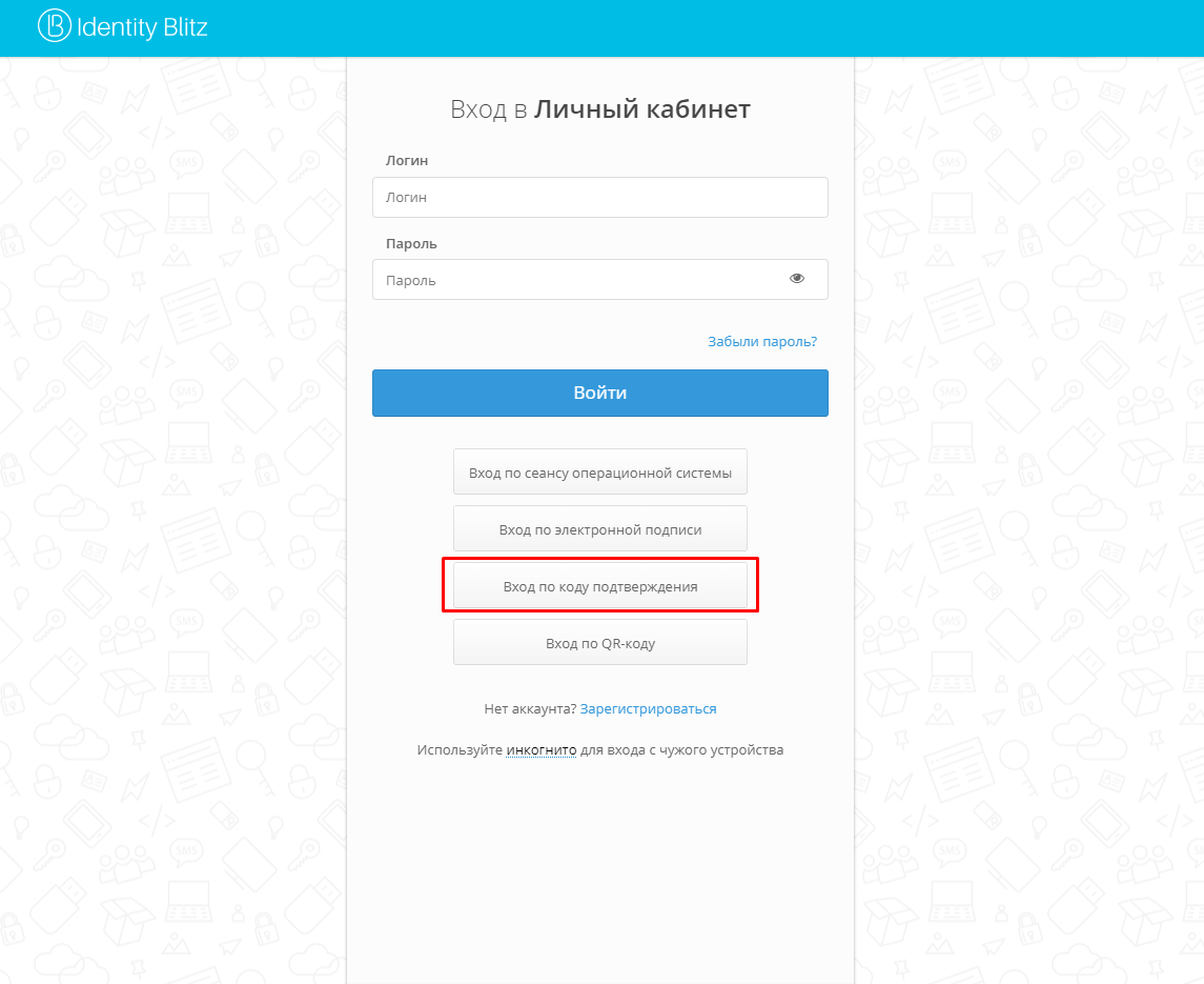 В зависимости от настроек Blitz Identity Provider, установленных организацией, помимо входа по логину и паролю, пользователю может быть доступен вход с помощью кода подтверждения. Внешний вид единой страницы входа может отличаться в зависимости от настроек, установленных организацией.