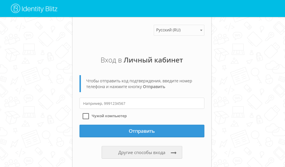 Вход с помощью кода подтверждения, отправляемого по SMS или PUSH#